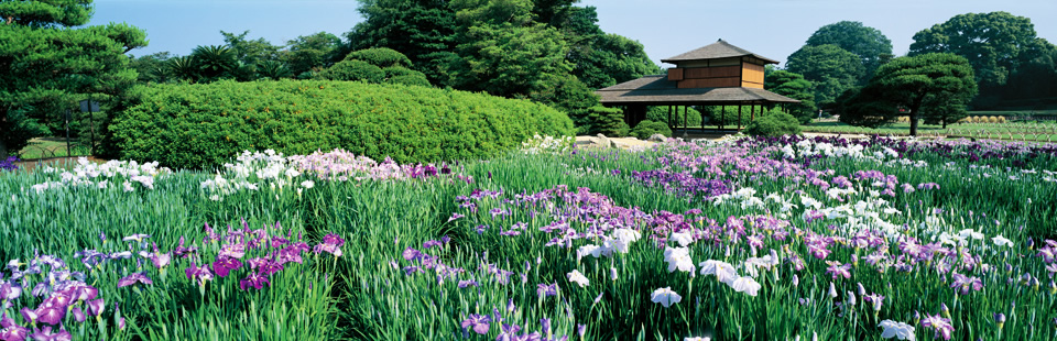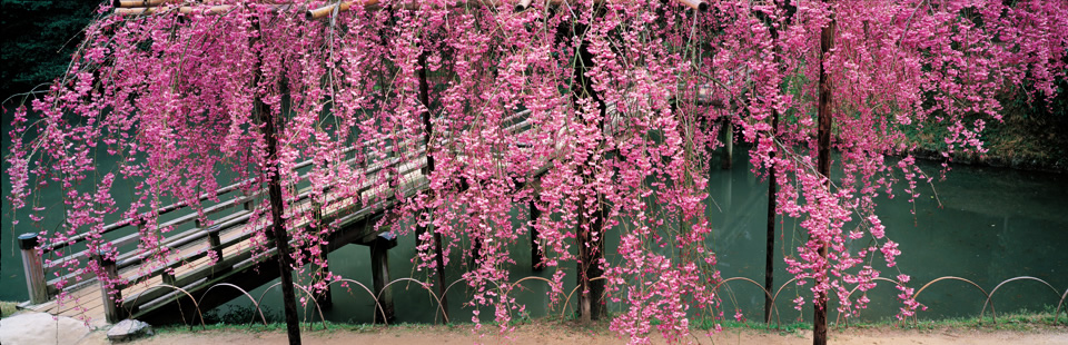 Namba has taken the photos of Korakuen over thirty years. His dynamic panoramas susceptibly reflect rare fascinating scenes of the garden.